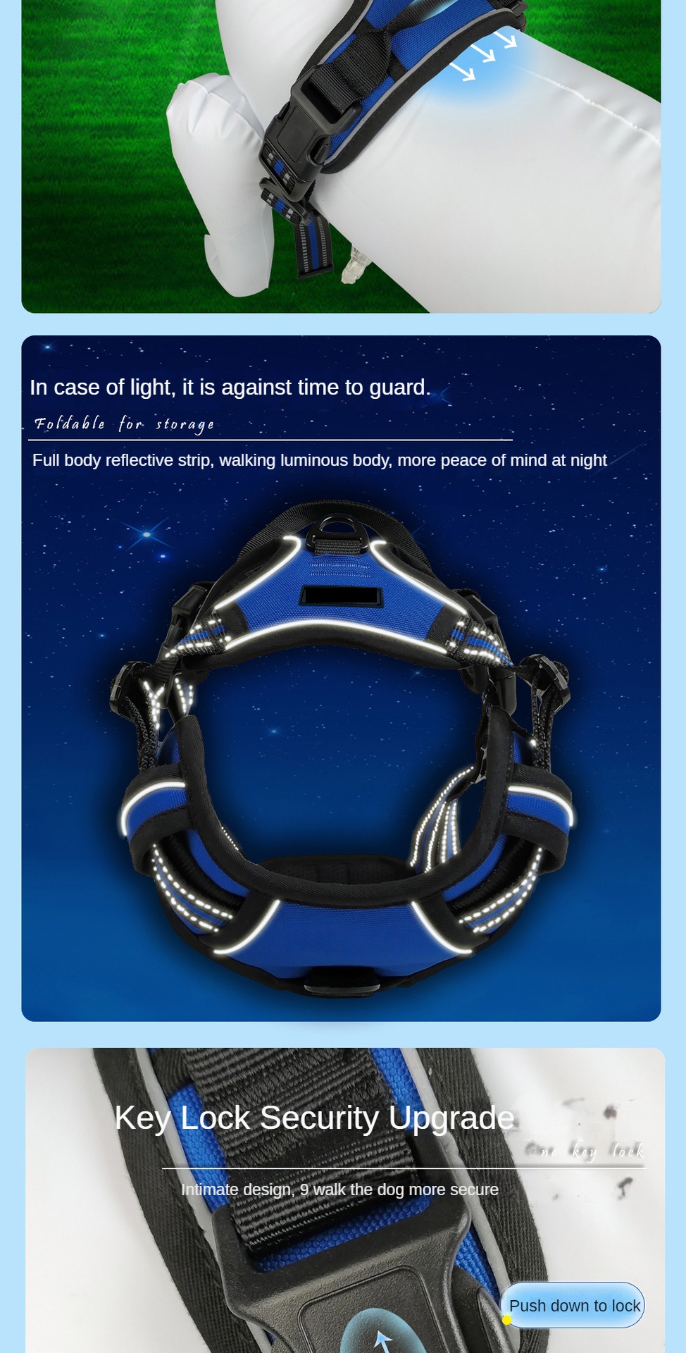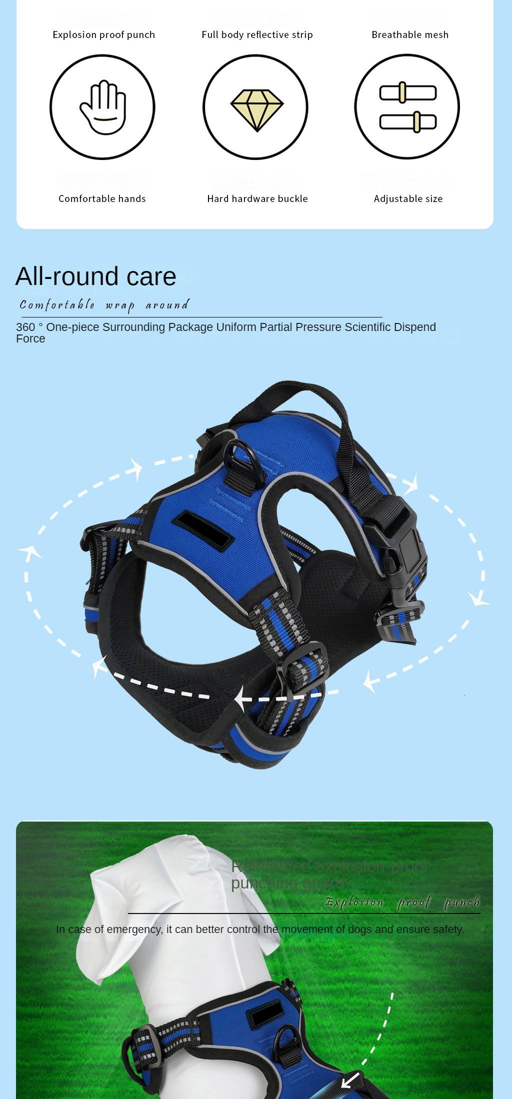 Dog leash, medium to large dog vest style explosion-proof punch, with handle reflective strip for walking dog leash